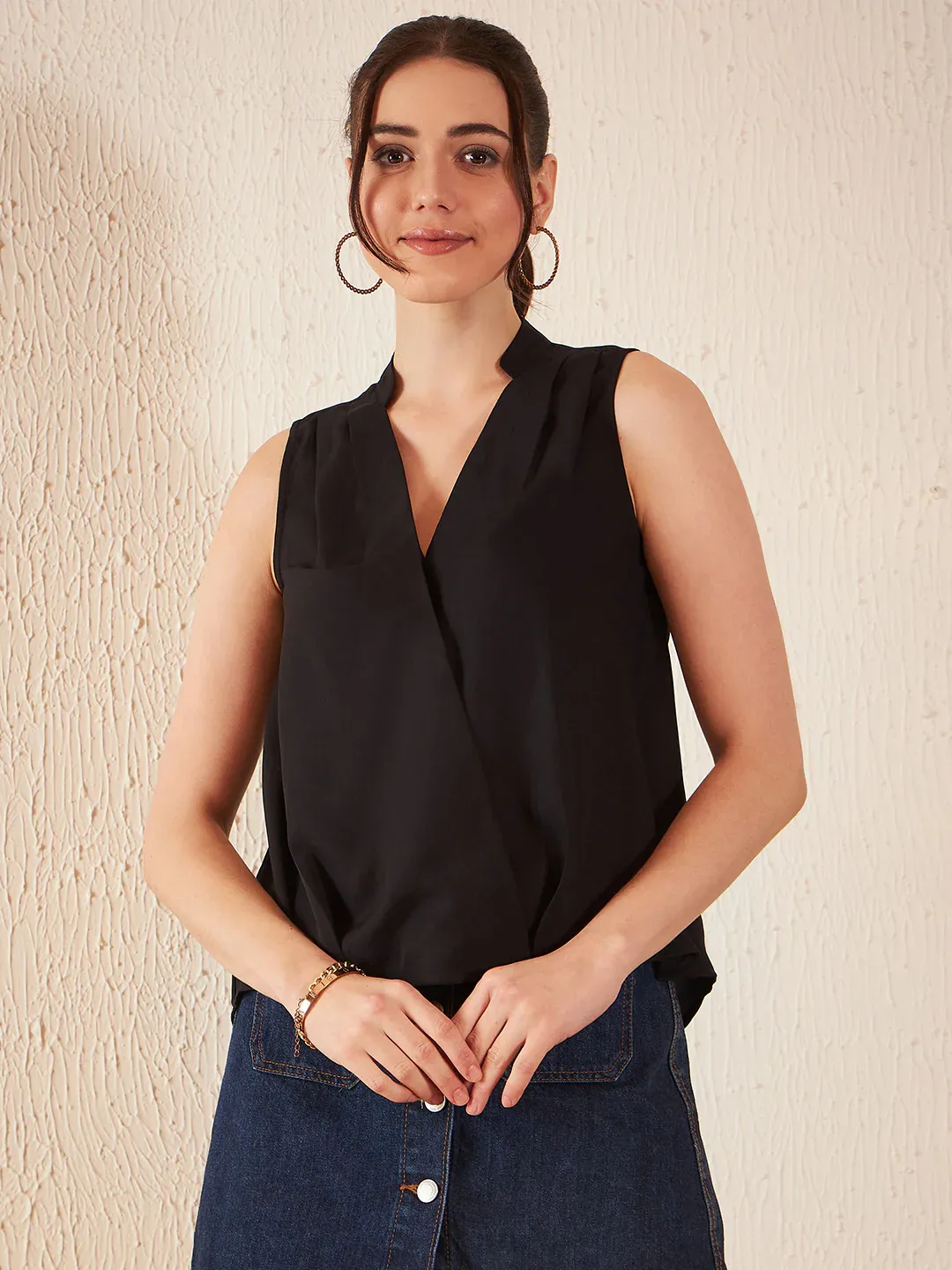 Elevate your wardrobe with this black V-neck sleeveless top. Sleek and versatile, it features a flattering V-neckline and a minimalist design perfect for any occasion. Made from soft, breathable fabric, it ensures all-day comfort. Pair it with tailored pants, skirts, or jeans for a timeless, chic look.