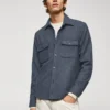 Wool mix fabric. Regular fit. Houndstooth print. Shirt-style collar. Two patch pockets with flaps on the chest. Long sleeve with buttoned cuffs. The model is 6’3″ and is wearing a size M. Front closure with buttons. Rounded hem.