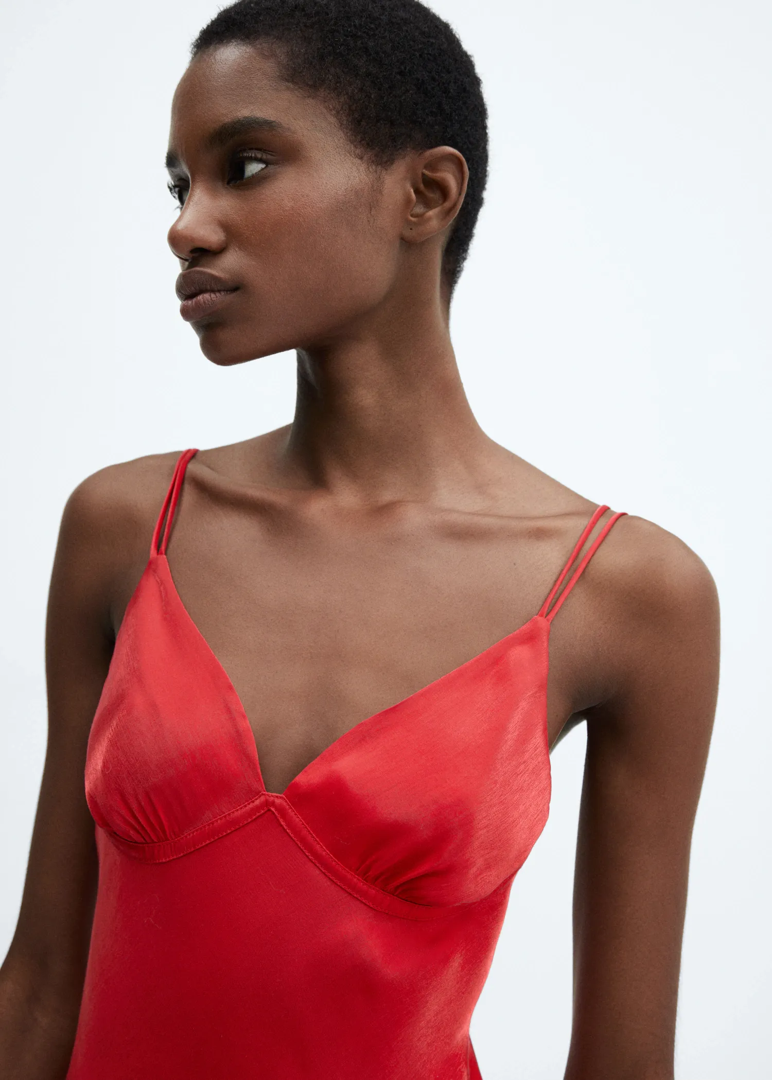Embrace effortless elegance with our Satin Camisole Dress, a timeless wardrobe essential. Crafted from luxurious satin, this dress features delicate spaghetti straps and a flattering V-neckline, offering a chic, minimalist silhouette.