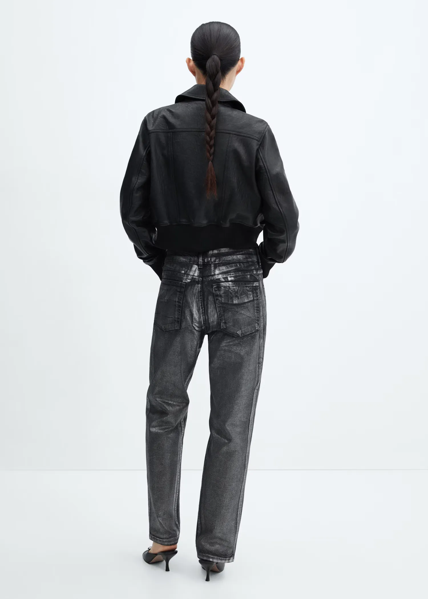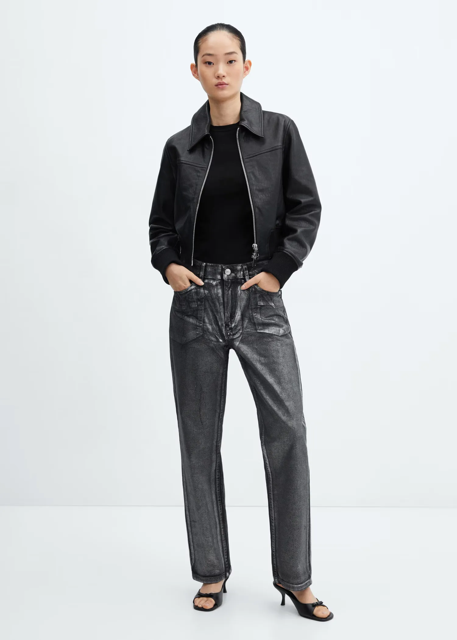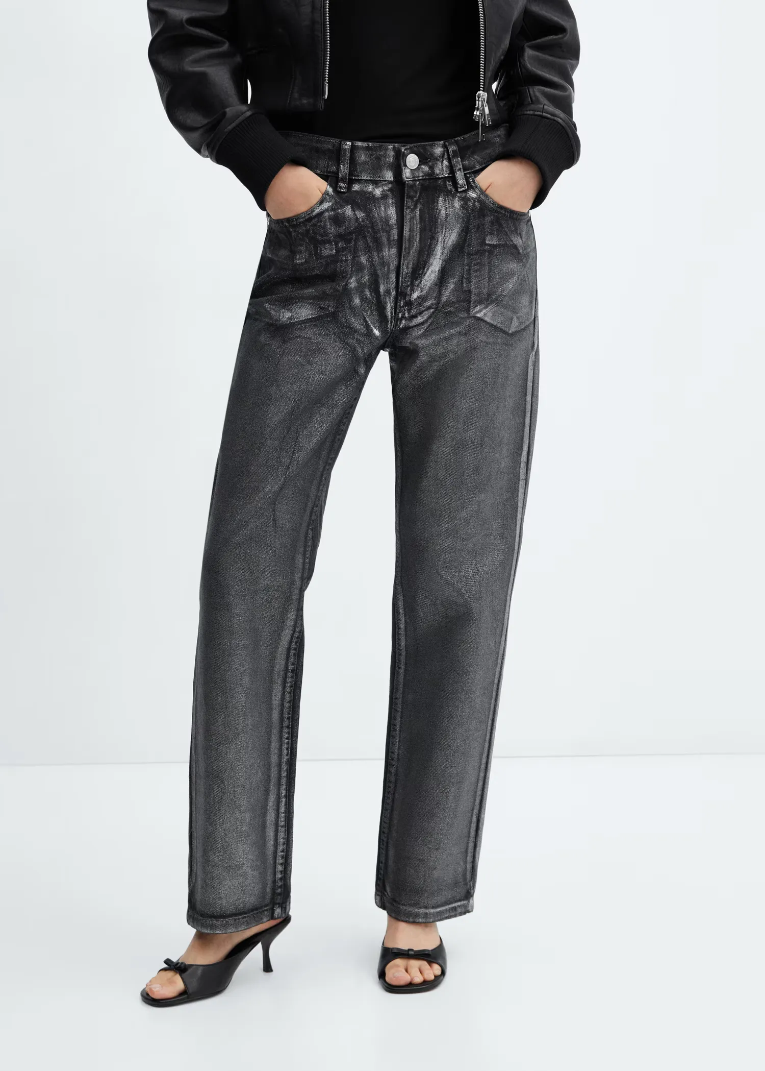 Make a statement with Straight Foil Jeans, designed for those who love a touch of glamour in their wardrobe. Featuring a sleek straight-leg fit and a metallic foil finish, these jeans offer a perfect blend of edgy and contemporary style.